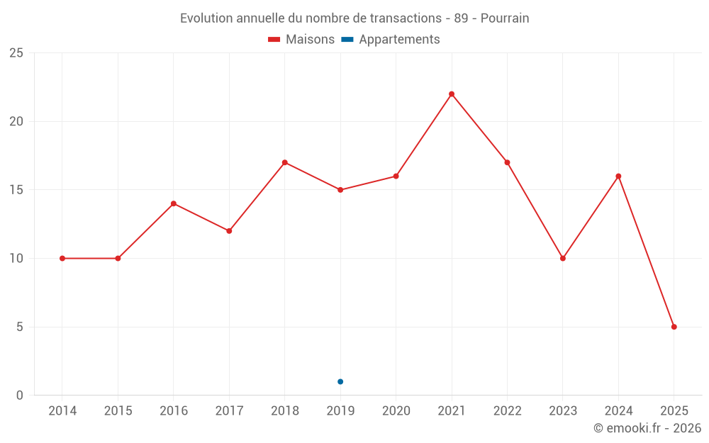 Le prix médian sur les 18 transactions de maisons des 12 derniers mois dans la commune de Pourrain était de 1 154 € par mètre carré pour une valeur foncière médiane de 99 950 €. Sur cette période 60% des transactions se sont situées entre 700 et 1 516 € par mètre carré (du 2ème au 8ème déciles).