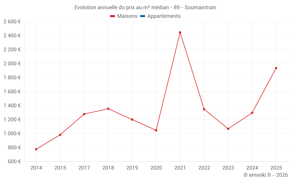 Attention, dernière année incomplète. Projections effectuées sur la base des proportions entre semestres de l'année précédente au niveau départemental/national et par catégorie de bien.