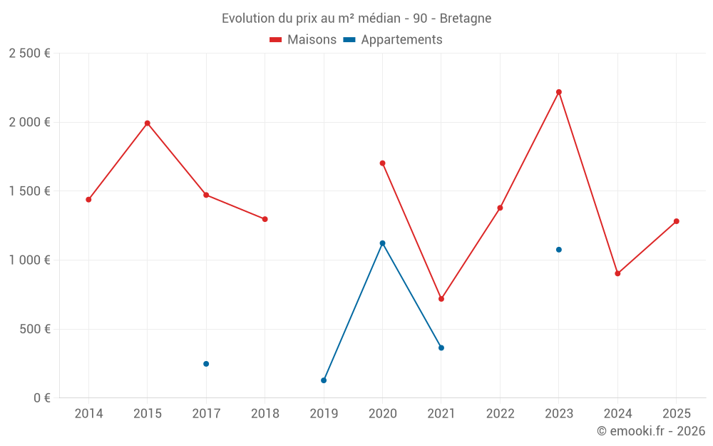 Valeurs des percentiles de prix au m² sur les périodes utilisées pour le prix estimé de chaque catégorie de bien.
