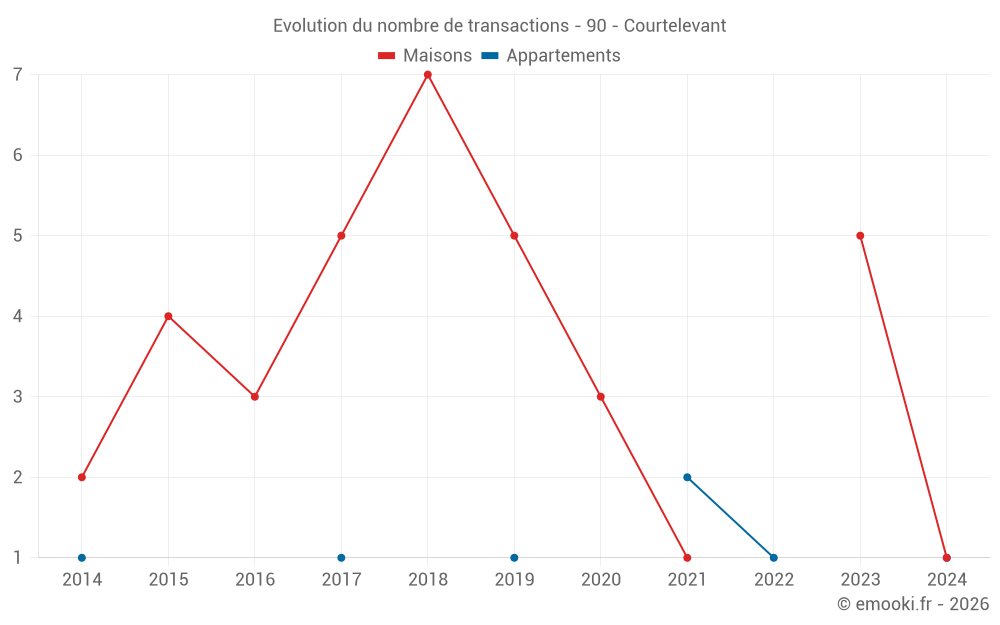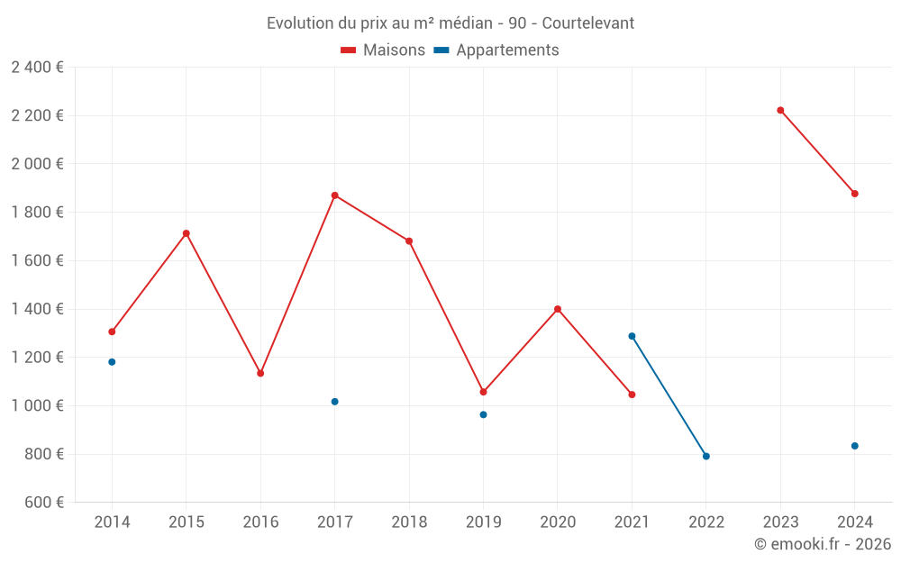 Attention, dernière année incomplète. Projections effectuées sur la base des proportions entre semestres de l'année précédente au niveau départemental/national et par catégorie de bien.