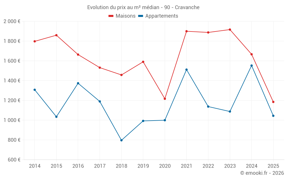 Carte des prix de l'immobilier dans la commune de Cravanche, choississez une section pour voir les transactions par parcelle.
