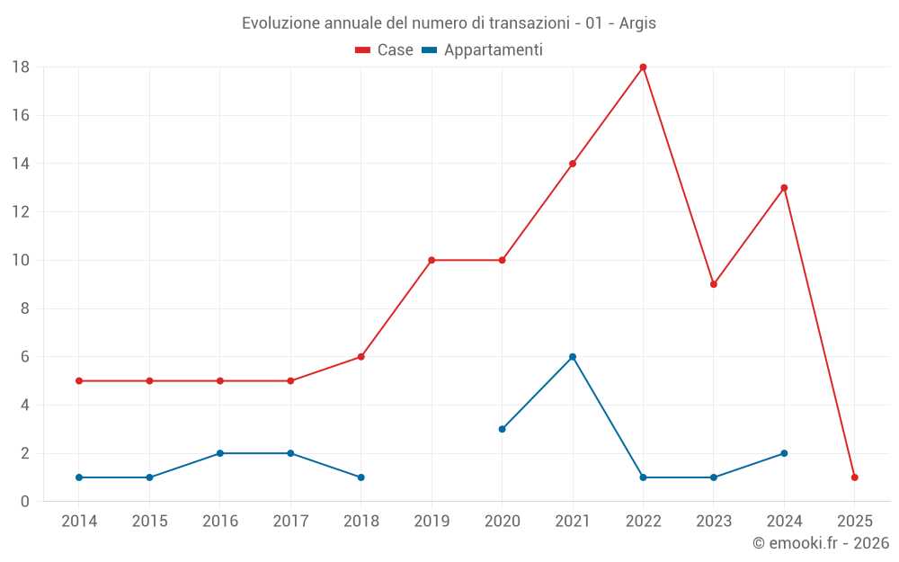 Il prezzo mediano sulle 18 transazioni di case degli ultimi 24 mesi nel comune di Argis era di 1 092 € al metro quadrato per un valore patrimoniale mediano di 79 000 €. In questo periodo il 60% delle transazioni era tra 582 e 1 487 € al metro quadrato (dal 2° all'8° decile).