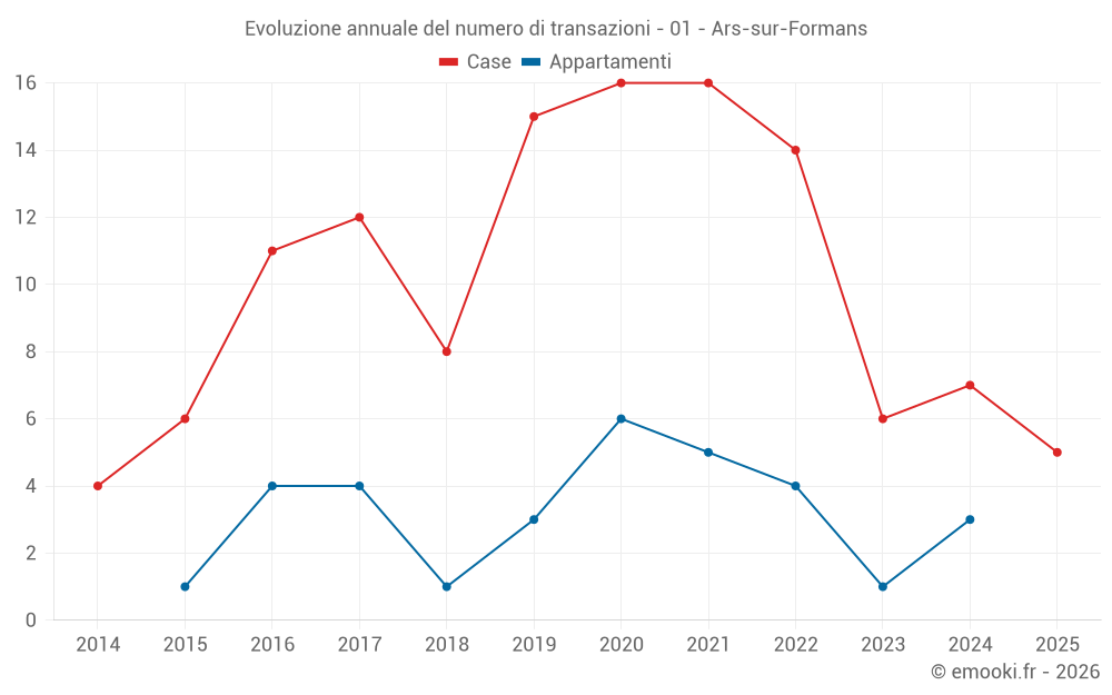 Il prezzo mediano sulle 14 transazioni di case degli ultimi 24 mesi nel comune di Ars-sur-Formans era di 2 947 € al metro quadrato per un valore patrimoniale mediano di 309 820 €. In questo periodo il 60% delle transazioni era tra 2 292 e 3 252 € al metro quadrato (dal 2° all'8° decile).