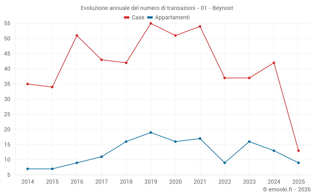Il prezzo mediano sulle 41 transazioni di case degli ultimi 12 mesi nel comune di Beynost era di 3 525 € al metro quadrato per un valore patrimoniale mediano di 422 500 €. In questo periodo il 60% delle transazioni era tra 2 385 e 4 167 € al metro quadrato (dal 2° all'8° decile).