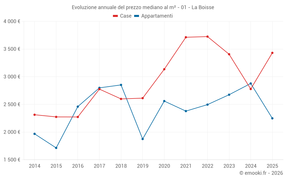 Il prezzo mediano sulle 18 transazioni di case degli ultimi 12 mesi nel comune di La Boisse era di 3 252 € al metro quadrato per un valore patrimoniale mediano di 365 550 €. In questo periodo il 60% delle transazioni era tra 2 543 e 3 667 € al metro quadrato (dal 2° all'8° decile).