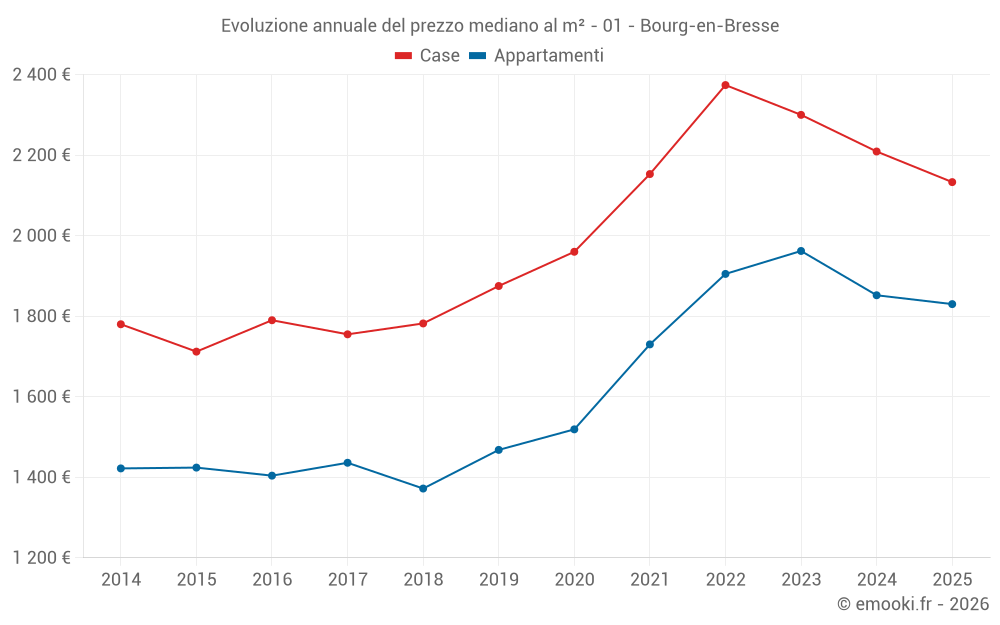 Qual è il prezzo al m2 delle case in Bourg-en-Bresse?