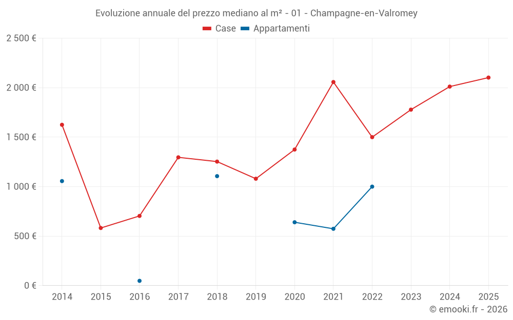 Evoluzione del prezzo mediano al m² degli appartamenti