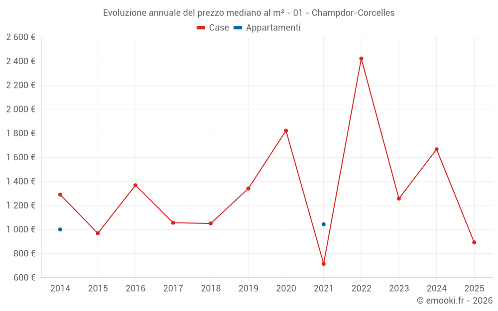 Evoluzione del prezzo mediano al m² degli appartamenti