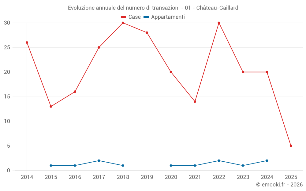 Il prezzo mediano sulle 17 transazioni di case degli ultimi 12 mesi nel comune di Château-Gaillard era di 2 476 € al metro quadrato per un valore patrimoniale mediano di 237 000 €. In questo periodo il 60% delle transazioni era tra 2 174 e 2 959 € al metro quadrato (dal 2° all'8° decile).
