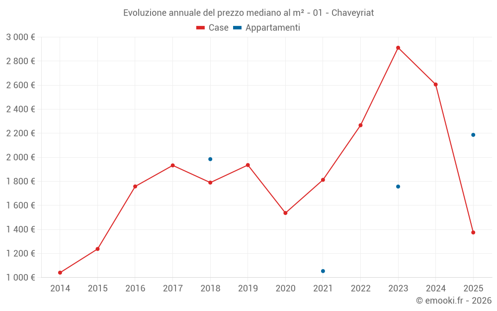 Evoluzione del prezzo mediano al m² degli appartamenti