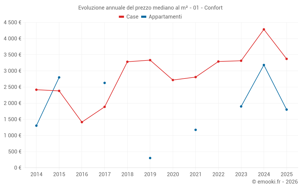 Evoluzione del prezzo mediano al m² degli appartamenti