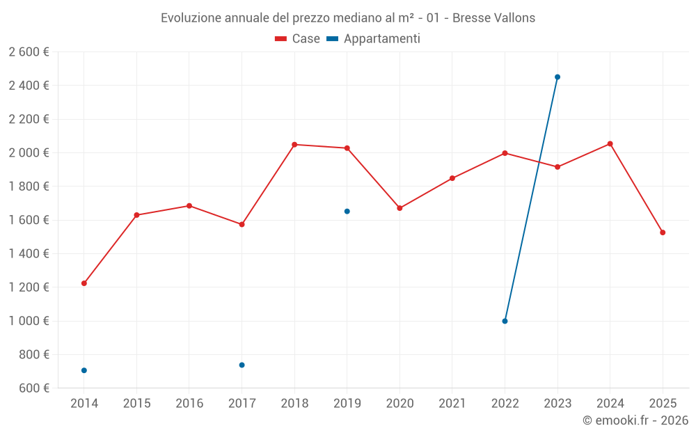 Qual è il prezzo al m2 delle case in Bresse Vallons?