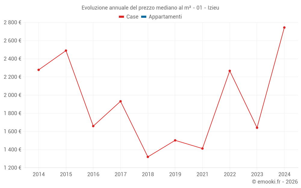 Evoluzione del prezzo mediano al m² degli appartamenti