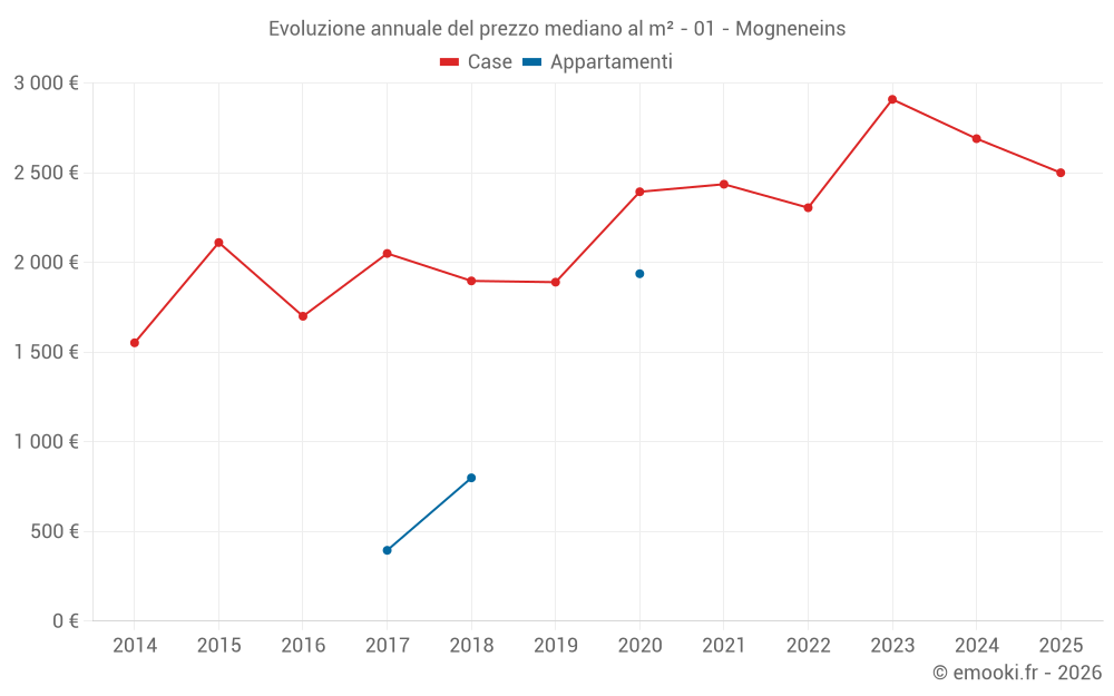Qual è il prezzo al m2 delle case in Mogneneins?