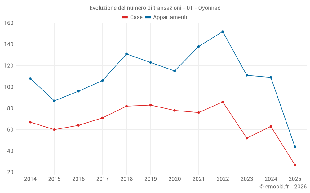 Attenzione, ultimo anno incompleto. Le proiezioni sono effettuate in base alle proporzioni tra semestri dell'anno precedente a livello dipartimentale/nazionale e per tipo di proprietà.