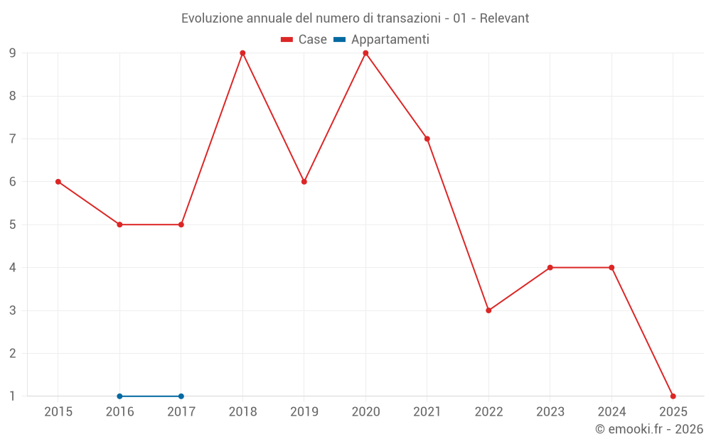 Attenzione, ultimo anno incompleto. Le proiezioni sono effettuate in base alle proporzioni tra semestri dell'anno precedente a livello dipartimentale/nazionale e per tipo di proprietà .