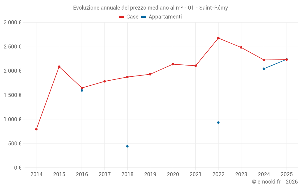 Evoluzione del prezzo mediano al m² degli appartamenti