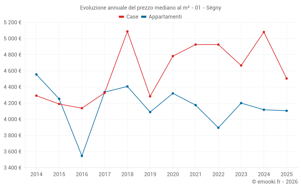 Il prezzo mediano sulle 17 transazioni di appartamenti degli ultimi 12 mesi nel comune di Ségny era di 4 069 € al metro quadrato per un valore patrimoniale mediano di 315 000 €. In questo periodo il 60% delle transazioni era tra 3 228 e 5 555 € al metro quadrato (dal 2° all'8° decile).