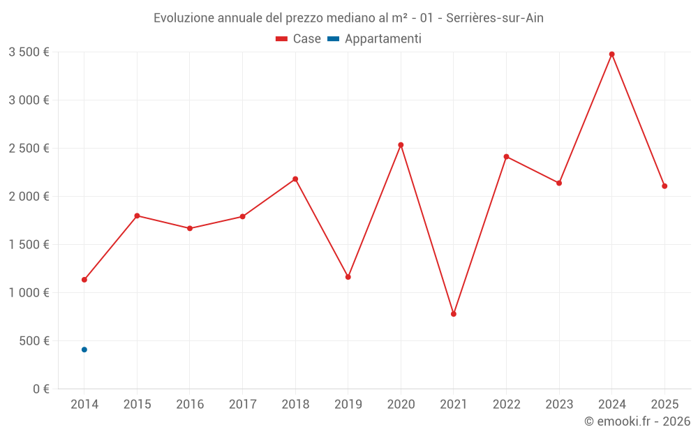 Evoluzione del prezzo mediano al m² degli appartamenti
