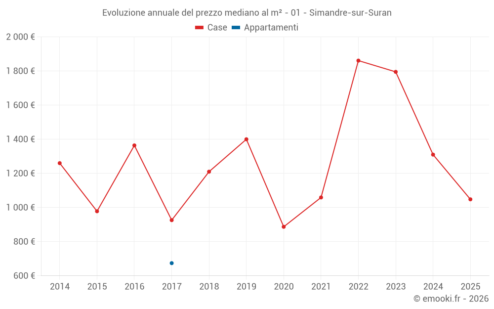 Il prezzo mediano sulle 19 transazioni di case degli ultimi 24 mesi nel comune di Simandre-sur-Suran era di 1 188 € al metro quadrato per un valore patrimoniale mediano di 110 000 €. In questo periodo il 60% delle transazioni era tra 936 e 1 754 € al metro quadrato (dal 2° all'8° decile).
