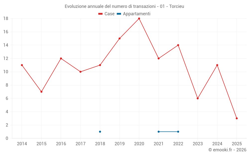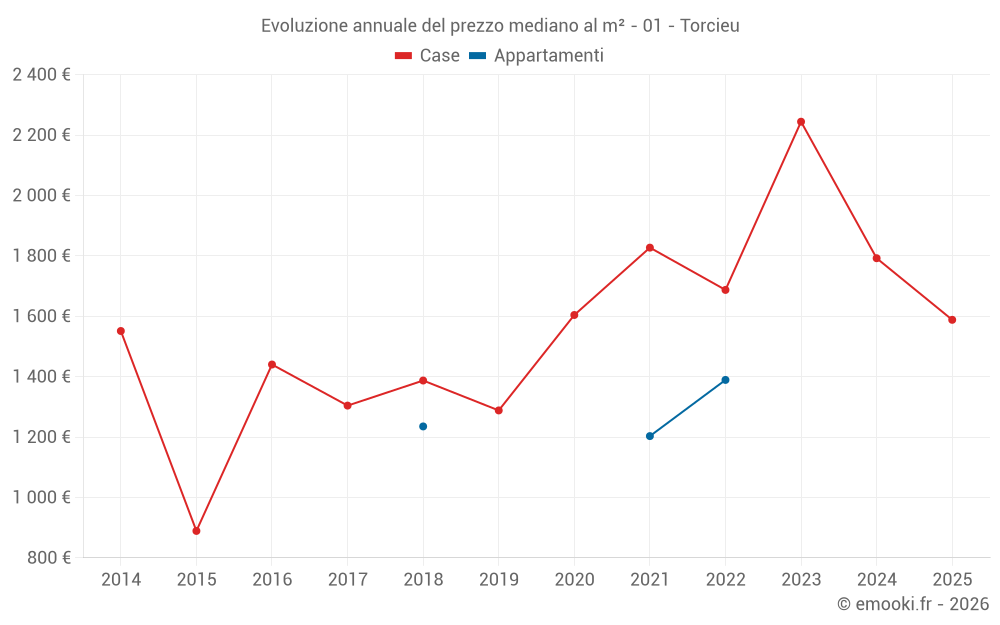 Il prezzo mediano sulle 18 transazioni di case degli ultimi 24 mesi nel comune di Torcieu era di 1 790 € al metro quadrato per un valore patrimoniale mediano di 166 500 €. In questo periodo il 60% delle transazioni era tra 1 427 e 2 138 € al metro quadrato (dal 2° all'8° decile).