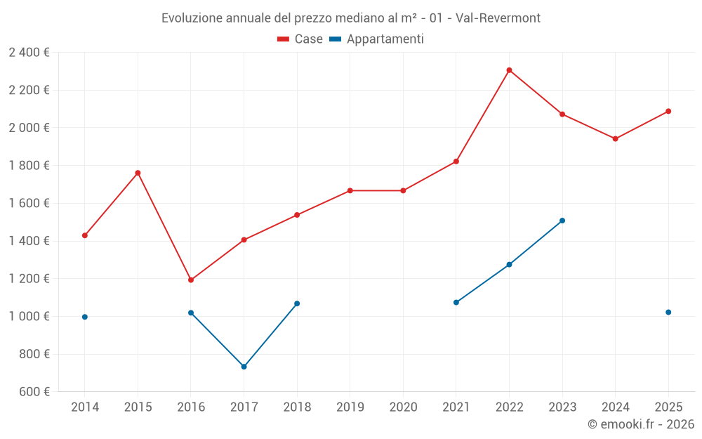 Il prezzo mediano sulle 29 transazioni di case degli ultimi 12 mesi nel comune di Val-Revermont era di 2 127 € al metro quadrato per un valore patrimoniale mediano di 200 000 €. In questo periodo il 60% delle transazioni era tra 1 595 e 2 458 € al metro quadrato (dal 2° all'8° decile).