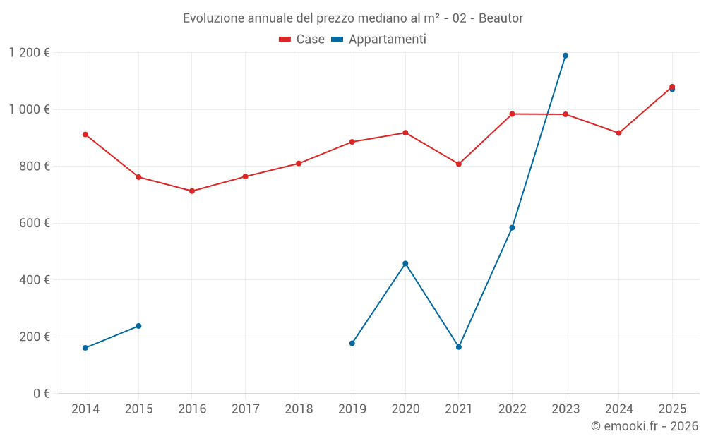 Qual è il prezzo al m2 delle case in Beautor?