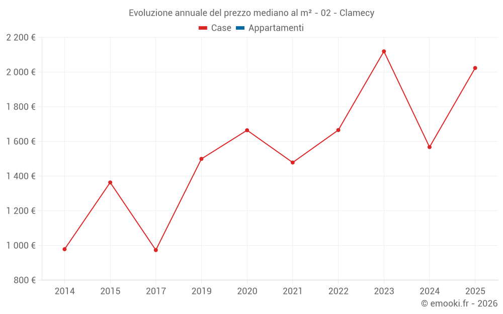 Evoluzione del prezzo mediano al m² degli appartamenti