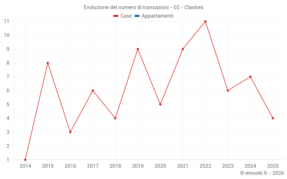 Mappa dei prezzi della casa nel comune di Clastres, scegli una sezione per vedere le transazioni per parcella.