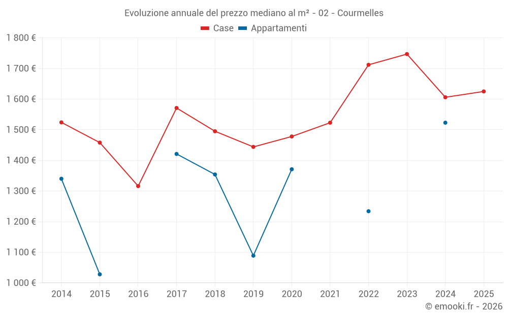 Qual è il prezzo al m2 delle case in Courmelles?