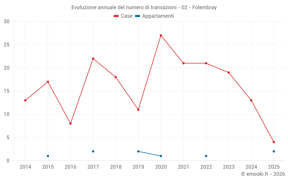Il prezzo mediano sulle 30 transazioni di case degli ultimi 24 mesi nel comune di Folembray era di 1 176 € al metro quadrato per un valore patrimoniale mediano di 94 500 €. In questo periodo il 60% delle transazioni era tra 993 e 1 448 € al metro quadrato (dal 2° all'8° decile).