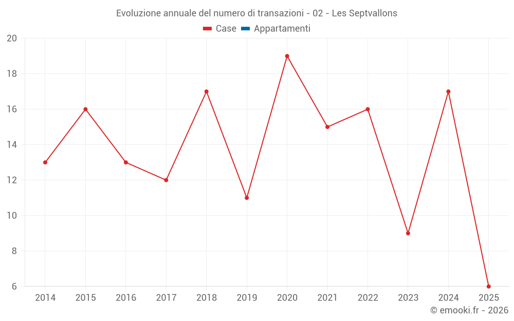Il prezzo mediano sulle 20 transazioni di case degli ultimi 12 mesi nel comune di Les Septvallons era di 1 405 € al metro quadrato per un valore patrimoniale mediano di 150 250 €. In questo periodo il 60% delle transazioni era tra 960 e 2 034 € al metro quadrato (dal 2° all'8° decile).