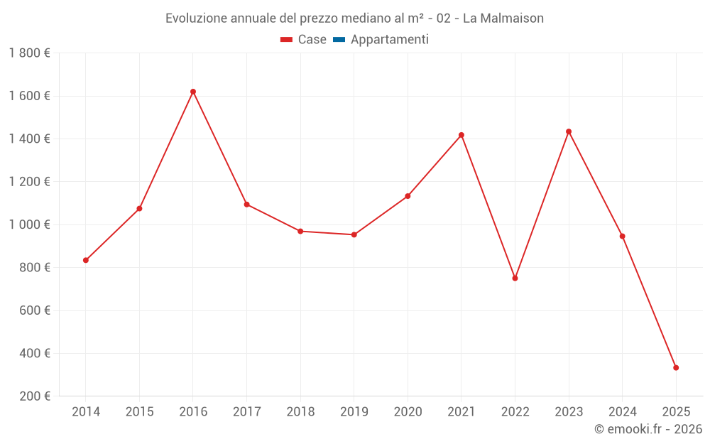 Evoluzione del prezzo mediano al m² degli appartamenti