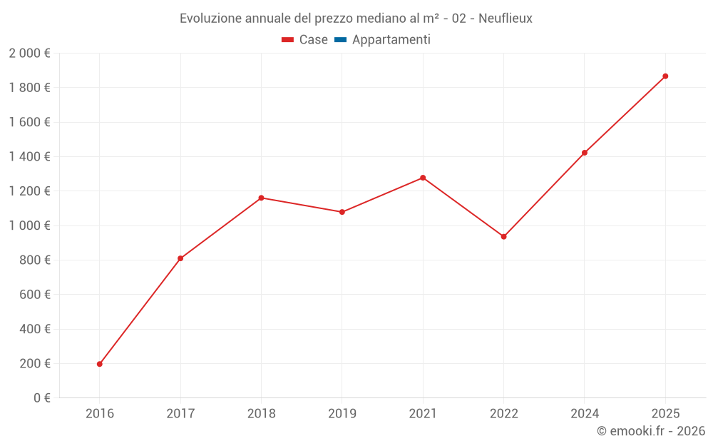 Evoluzione del prezzo mediano al m² degli appartamenti