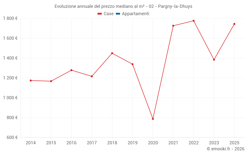 Evoluzione del prezzo mediano al m² degli appartamenti