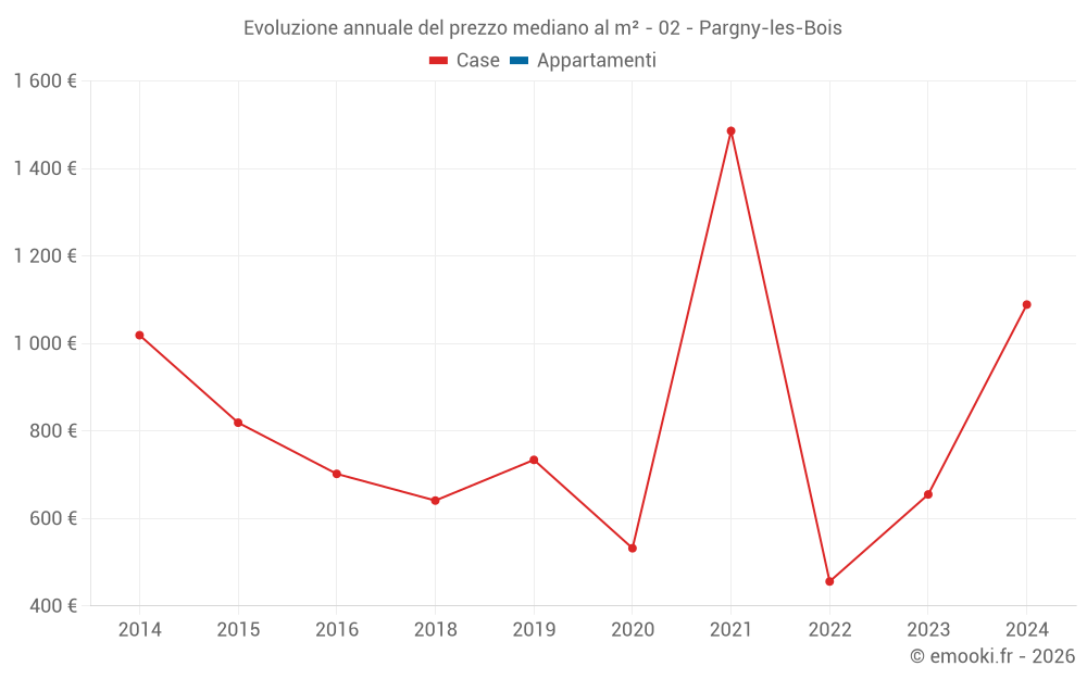 Evoluzione del prezzo mediano al m² degli appartamenti
