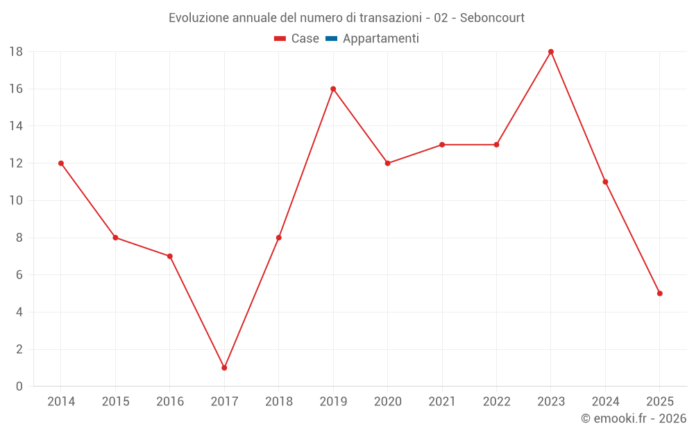 Il prezzo mediano sulle 26 transazioni di case degli ultimi 24 mesi nel comune di Seboncourt era di 956 € al metro quadrato per un valore patrimoniale mediano di 82 750 €. In questo periodo il 60% delle transazioni era tra 688 e 1 214 € al metro quadrato (dal 2° all'8° decile).
