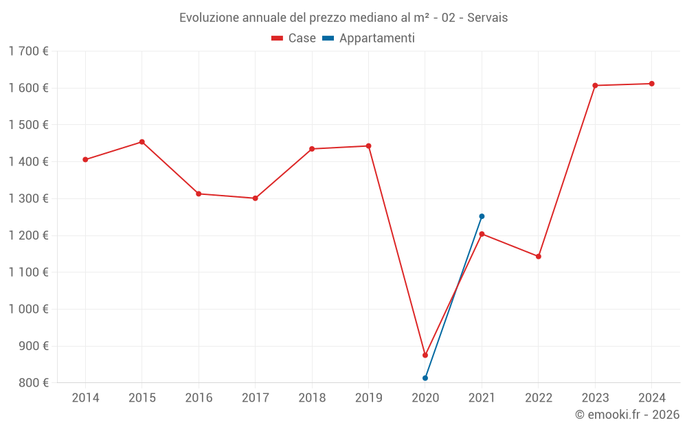 Evoluzione del prezzo mediano al m² degli appartamenti