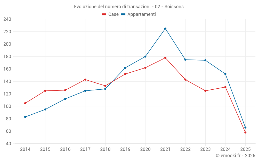 Attenzione, ultimo anno incompleto. Le proiezioni sono effettuate in base alle proporzioni tra semestri dell'anno precedente a livello dipartimentale/nazionale e per tipo di proprietà.