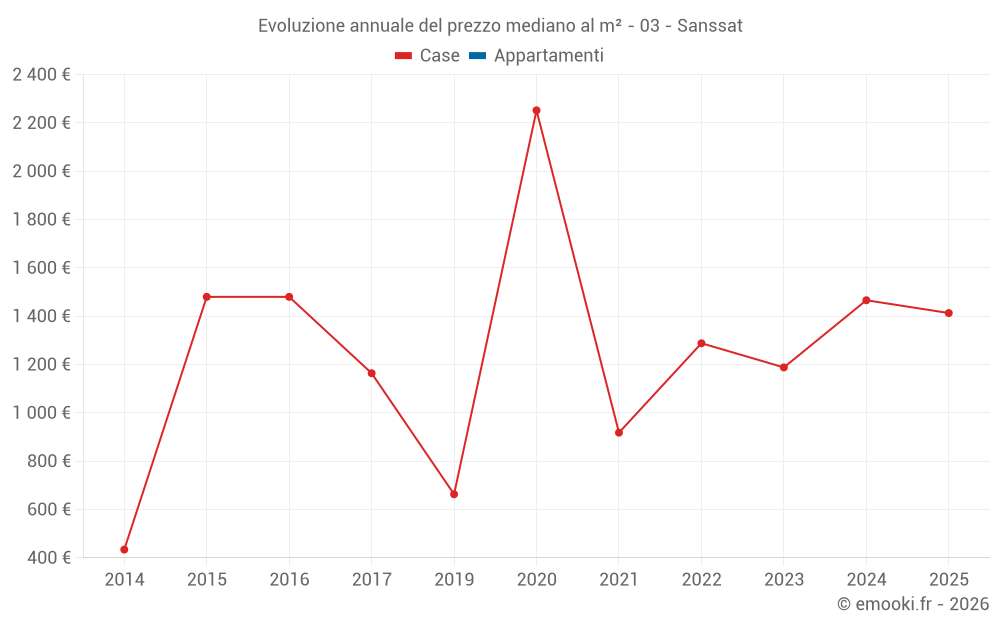 Evoluzione del prezzo mediano al m² degli appartamenti