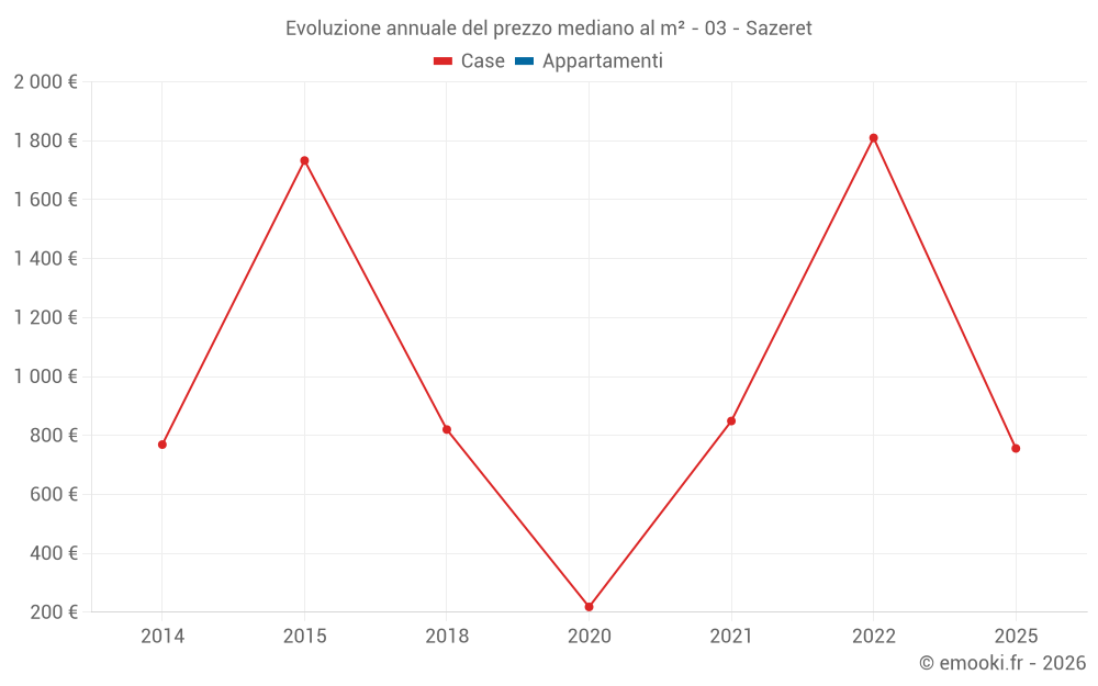 Evoluzione del prezzo mediano al m² degli appartamenti