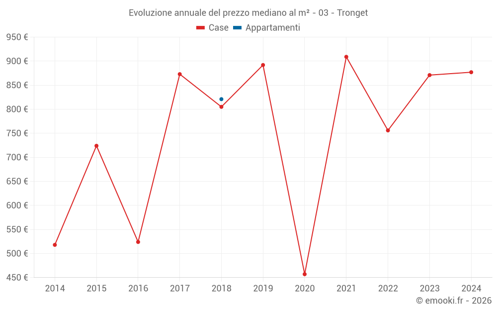 Il prezzo mediano sulle 20 transazioni di case degli ultimi 24 mesi nel comune di Tronget era di 855 € al metro quadrato per un valore patrimoniale mediano di 90 000 €. In questo periodo il 60% delle transazioni era tra 656 e 1 145 € al metro quadrato (dal 2° all'8° decile).