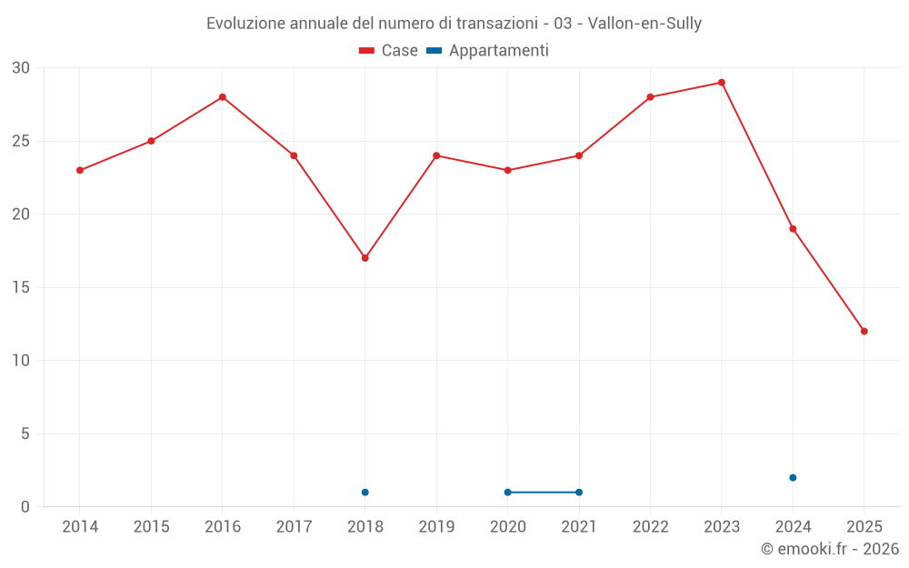 Il prezzo mediano sulle 25 transazioni di case degli ultimi 12 mesi nel comune di Vallon-en-Sully era di 811 € al metro quadrato per un valore patrimoniale mediano di 65 000 €. In questo periodo il 60% delle transazioni era tra 359 e 1 226 € al metro quadrato (dal 2° all'8° decile).