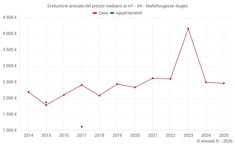 Evoluzione del prezzo mediano al m² degli appartamenti