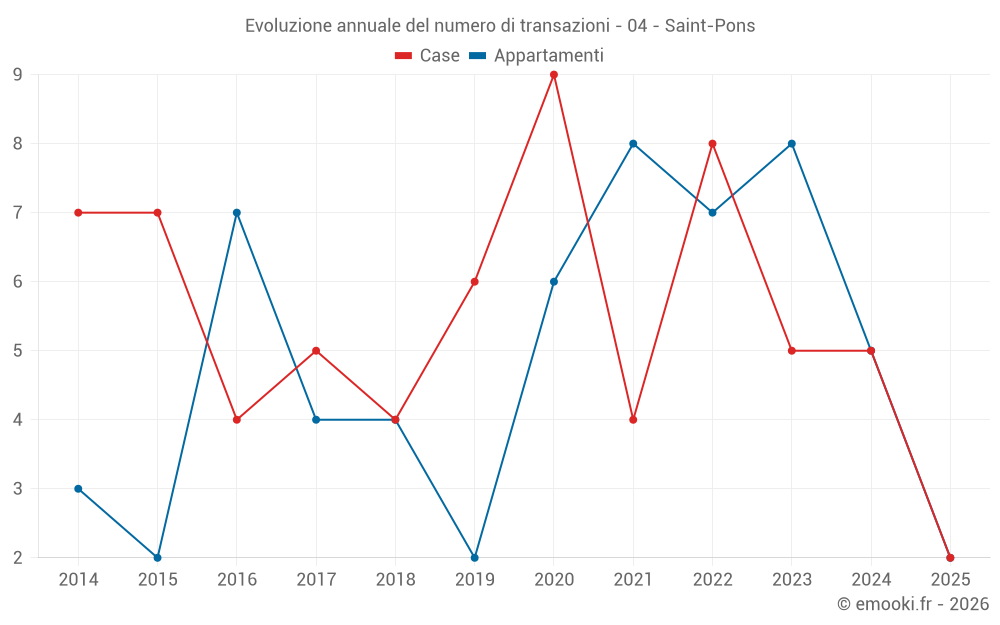 Il prezzo mediano sulle 14 transazioni di appartamenti degli ultimi 24 mesi nel comune di Saint-Pons era di 2 558 € al metro quadrato per un valore patrimoniale mediano di 109 400 €. In questo periodo il 60% delle transazioni era tra 1 136 e 3 115 € al metro quadrato (dal 2° all'8° decile).