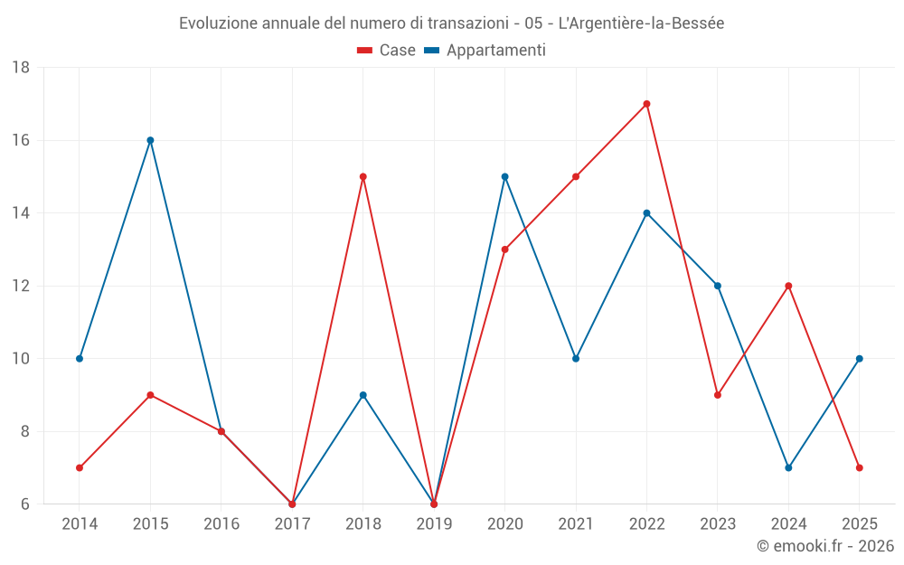 Il prezzo mediano sulle 24 transazioni di case degli ultimi 24 mesi nel comune di L'Argentière-la-Bessée era di 2 352 € al metro quadrato per un valore patrimoniale mediano di 236 875 €. In questo periodo il 60% delle transazioni era tra 1 719 e 3 784 € al metro quadrato (dal 2° all'8° decile).