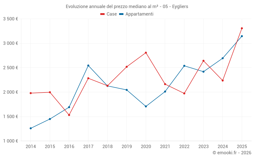 Qual è il prezzo al m2 degli appartamenti in Eygliers?