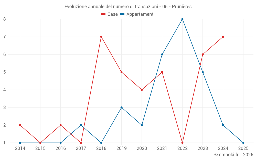 Mappa dei prezzi della casa nel comune di Prunières, scegli una sezione per vedere le transazioni per parcella.