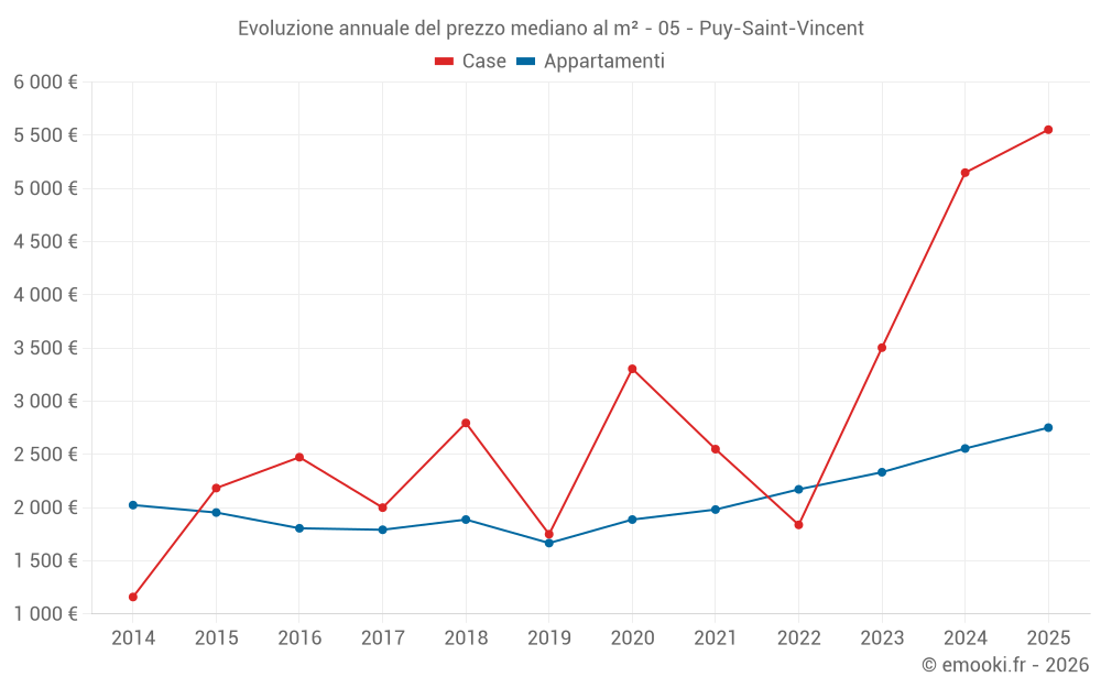 Il prezzo mediano sulle 23 transazioni di appartamenti degli ultimi 3 mesi nel comune di Puy-Saint-Vincent era di 2 752 € al metro quadrato per un valore patrimoniale mediano di 77 000 €. In questo periodo il 60% delle transazioni era tra 2 305 e 3 381 € al metro quadrato (dal 2° all'8° decile).