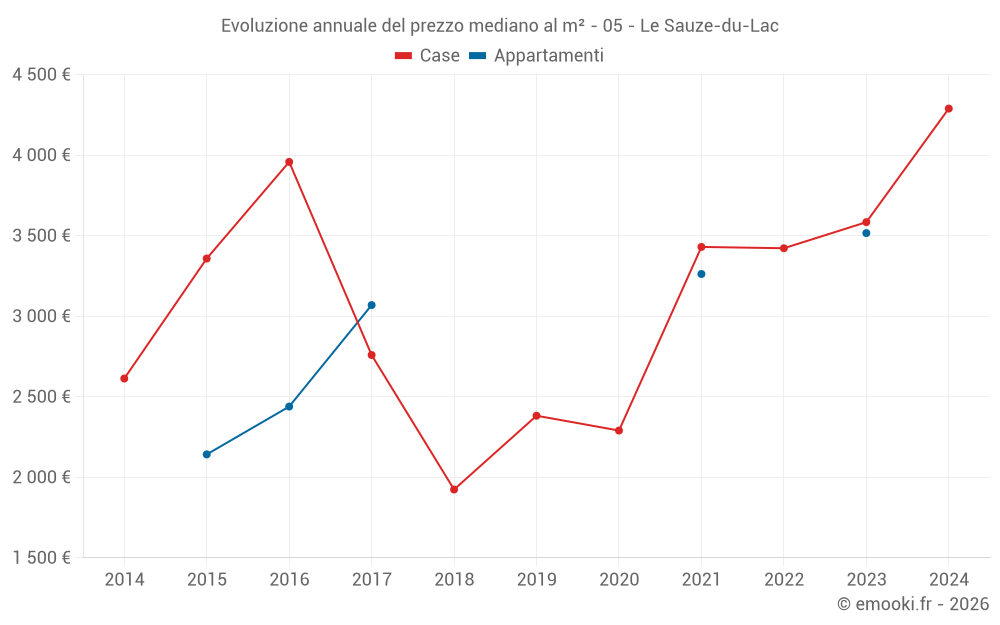 Evoluzione del prezzo mediano al m² degli appartamenti